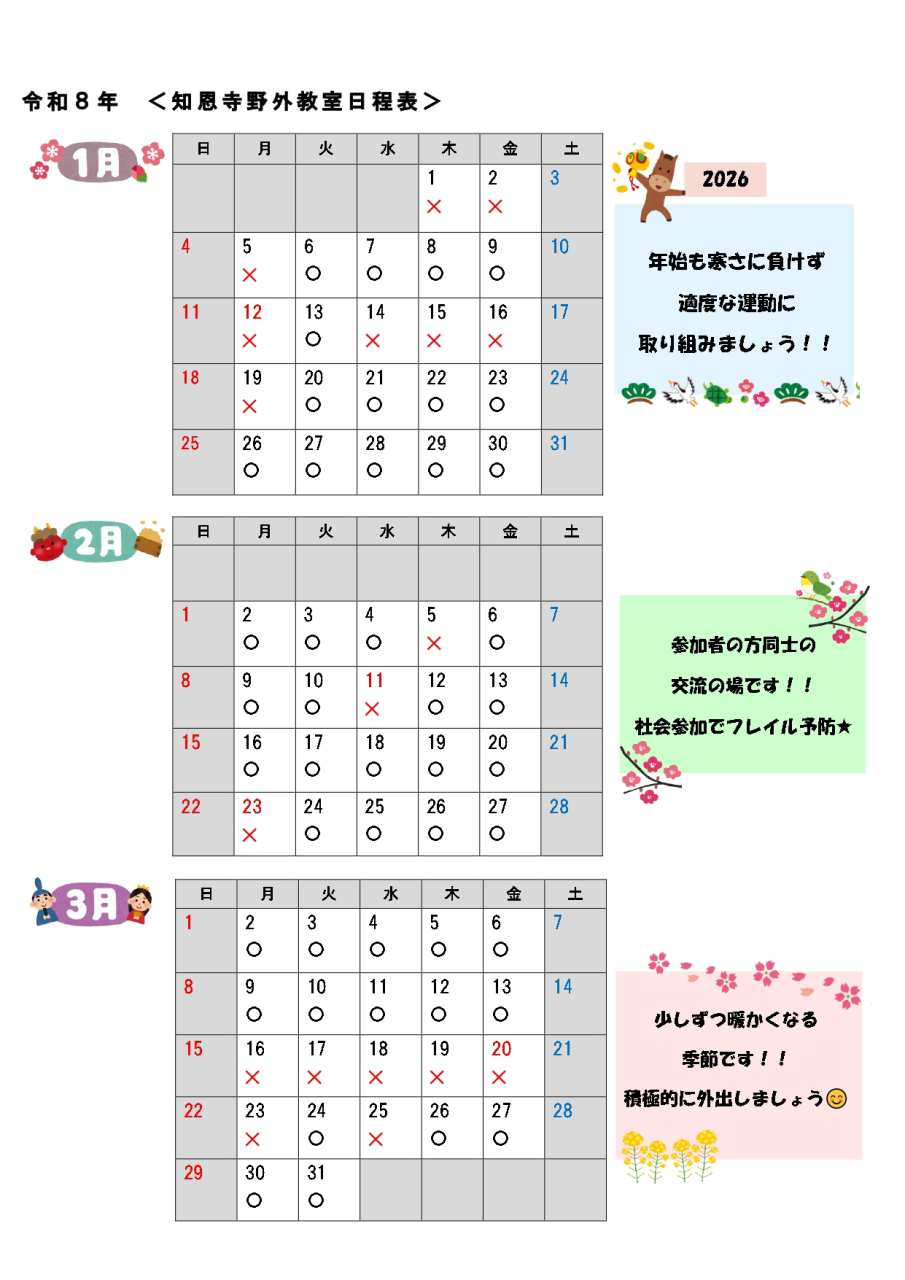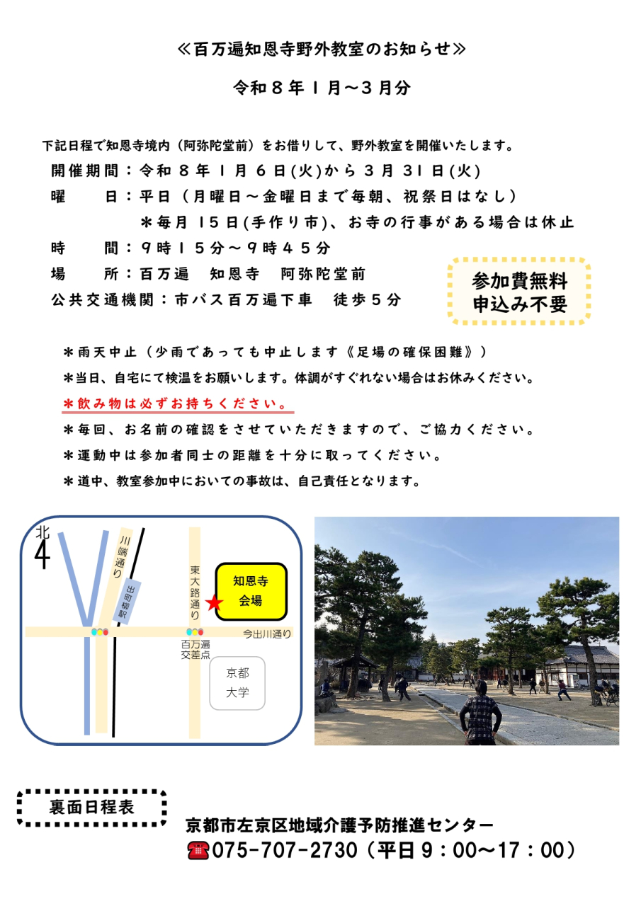 野外教室《知恩寺》開催のお知らせ 令和8年1月〜3月