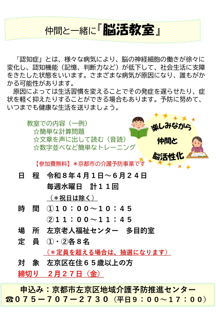 仲間と一緒に「脳活教室」募集のお知らせ
