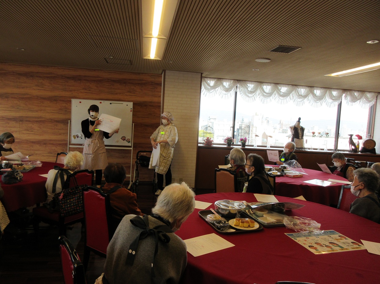 お祝い膳は、春の山菜や果物等をふんだんに使用して、春を感じてもらえるようなお食事を作りました。皆様からも「おいしい、ありがとう」とたくさんのありがたいお言葉をいただきました。私たちスタッフも皆様がおいしくお食事されている姿を見ることができ、大変うれしく思います。