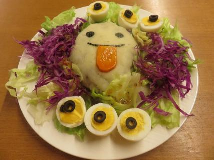- 生ハムと秋野菜のハーモニー、イカ墨ペンネのハロウィンサラダ