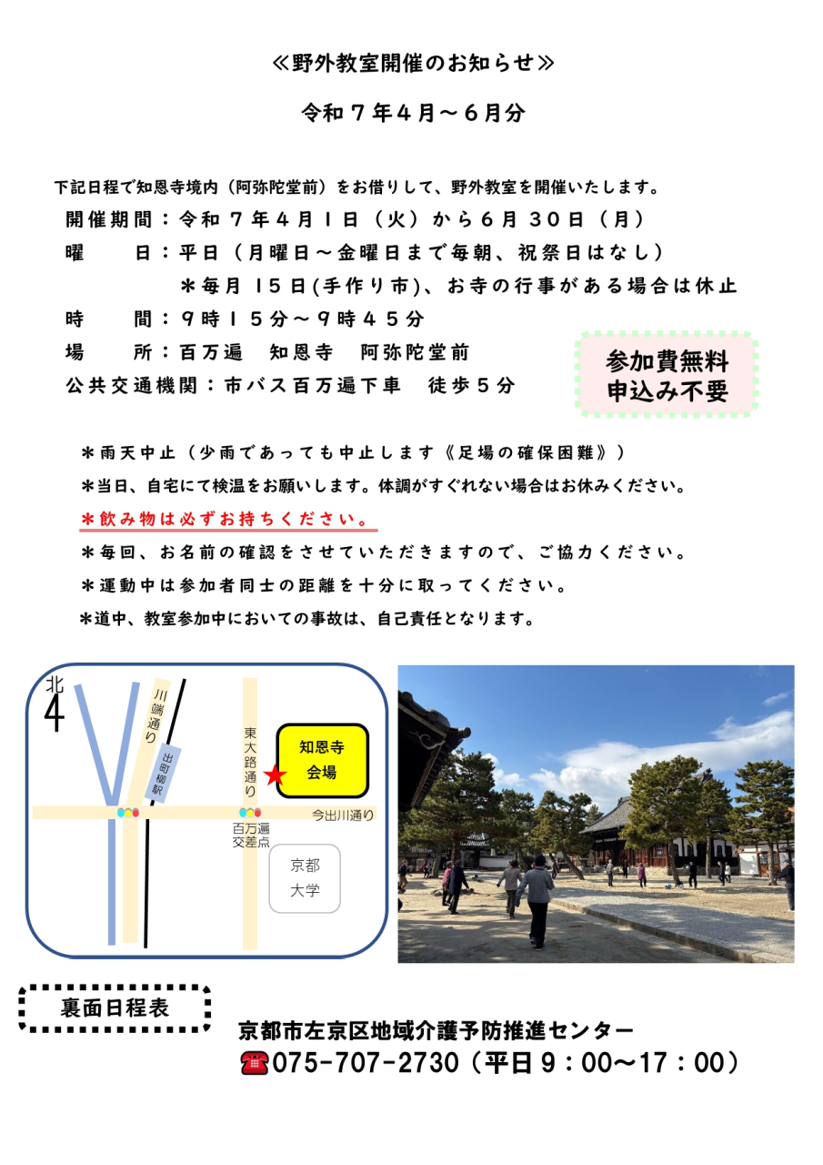 5月26日(月)の知恩寺の野外教室を休止いたします。