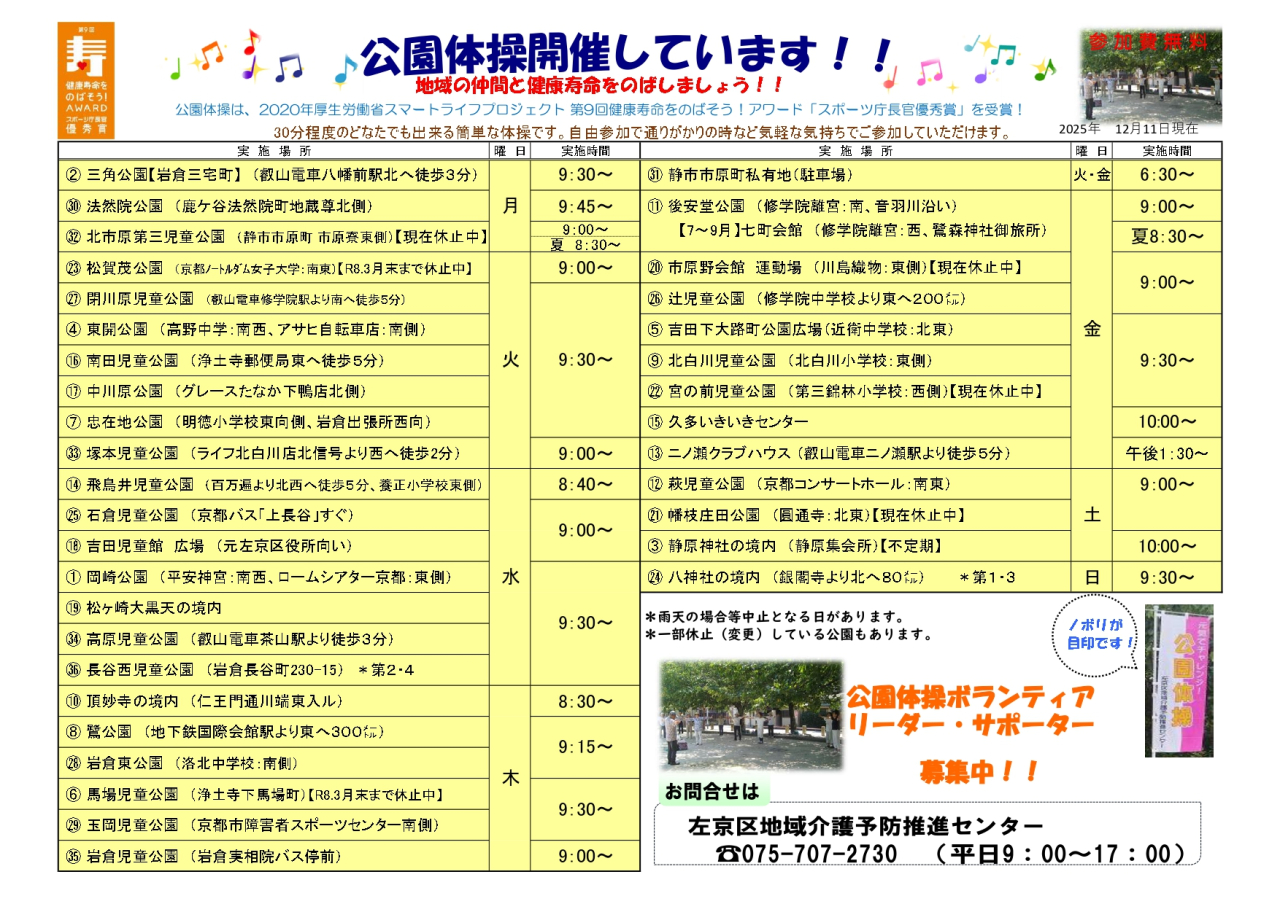 長谷西児童公園の公園体操と最新公園体操一覧 《修正版》