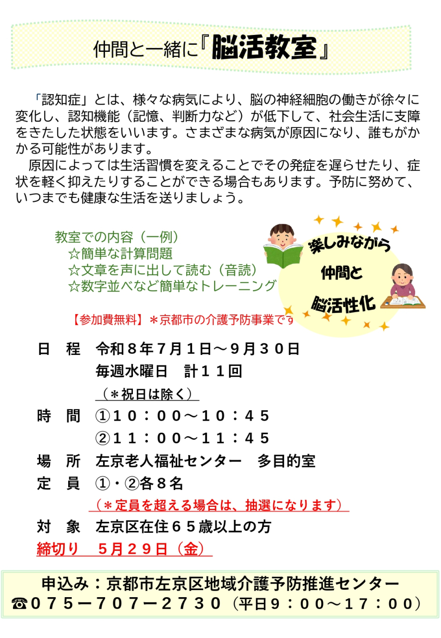 仲間と一緒に『脳活教室』7月~9月募集のお知らせ